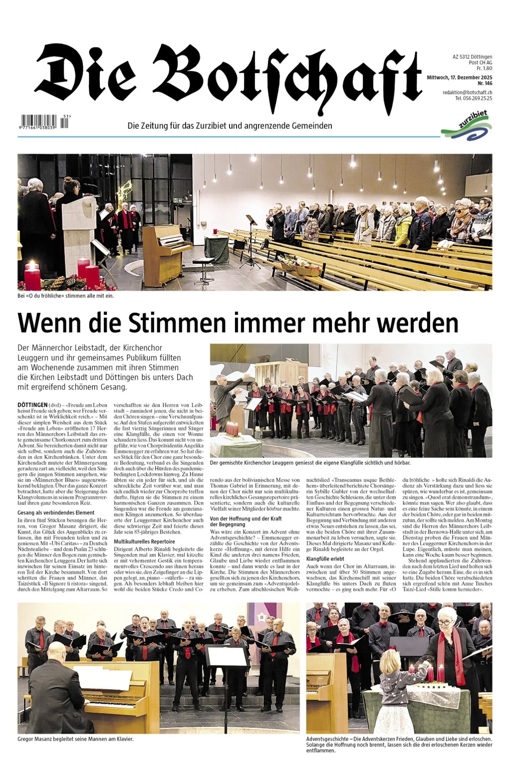 Zusammen mit dem Kirchenchor Leuggern führte der Männerchor ein gemeinsames Konzert durch, bestehend aus traditionellen Advents- und Weihnachtsliedern sowie klassischer Chormusik.